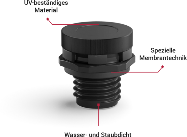 Durch Temperaturschwankungen innerhalb eines Gehäuses, ausgelöst durch äußere Einflüsse (wie zum Beispiel wechselnde Wetterverhältnisse), kann es zu Kondenswasserbildung innerhalb des Gehäuses kommen. Um dies zu verhindern, empfehlen wir den Einsatz eines Druckausgleichselementes oder einer Druckausgleichsverschraubung.